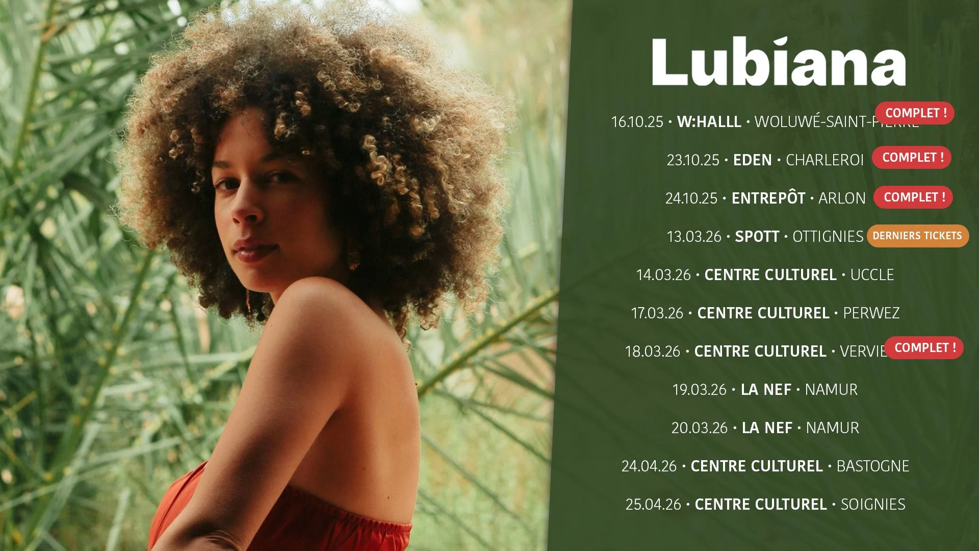 Lubiana confirme, soir après soir, l’ampleur de son succès. Sur chaque scène, son univers singulier et sa présence magnétique emportent le public. Les salles se remplissent, les émotions circulent, et la tournée affiche presque complet à chaque étape, avec de nombreuses dates déjà sold out. Une dynamique rare qui témoigne de l’attachement du public pour son projet.